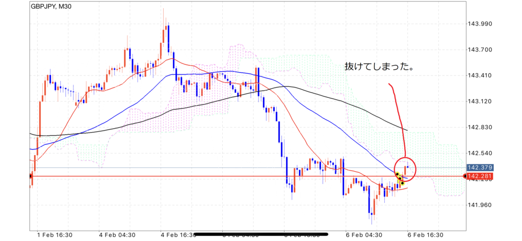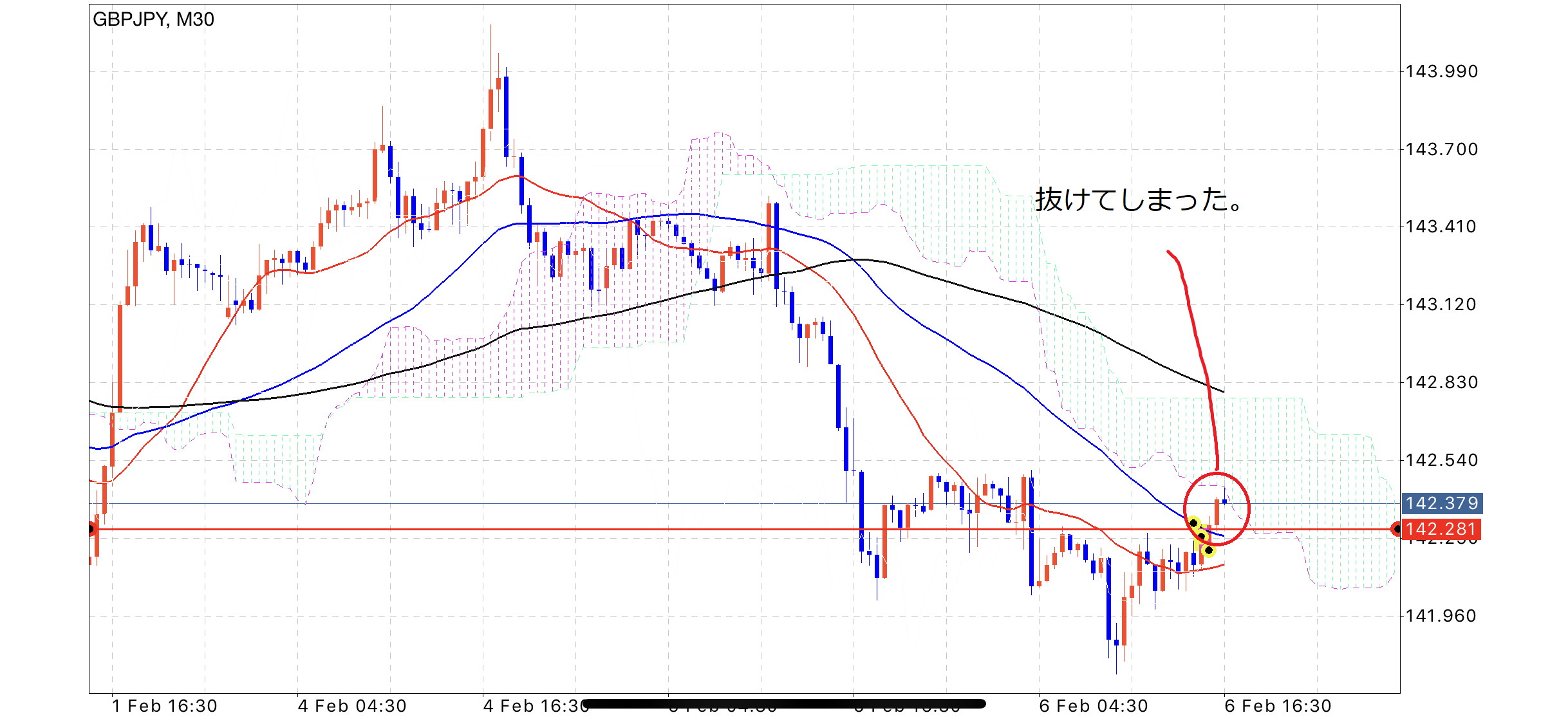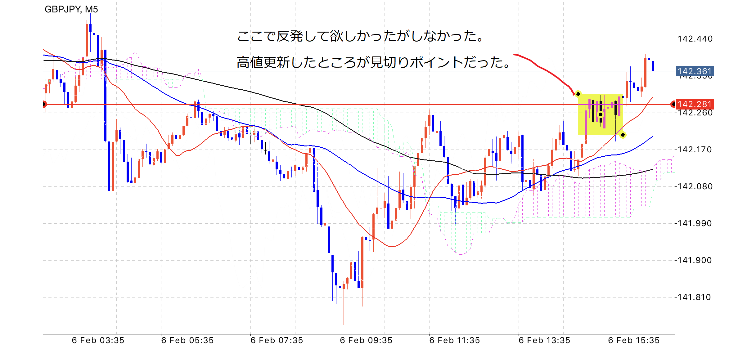 この黄色のウジウジから反発すると先走ってエントリーした結果狩られました。