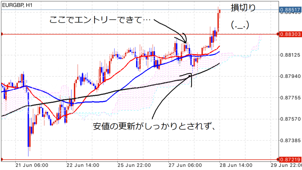 最初のほうは含み益がすぐに出ていたので、ベストタイミングトレードかと思い期待していましたが、あえなく逆行(;´Д`)