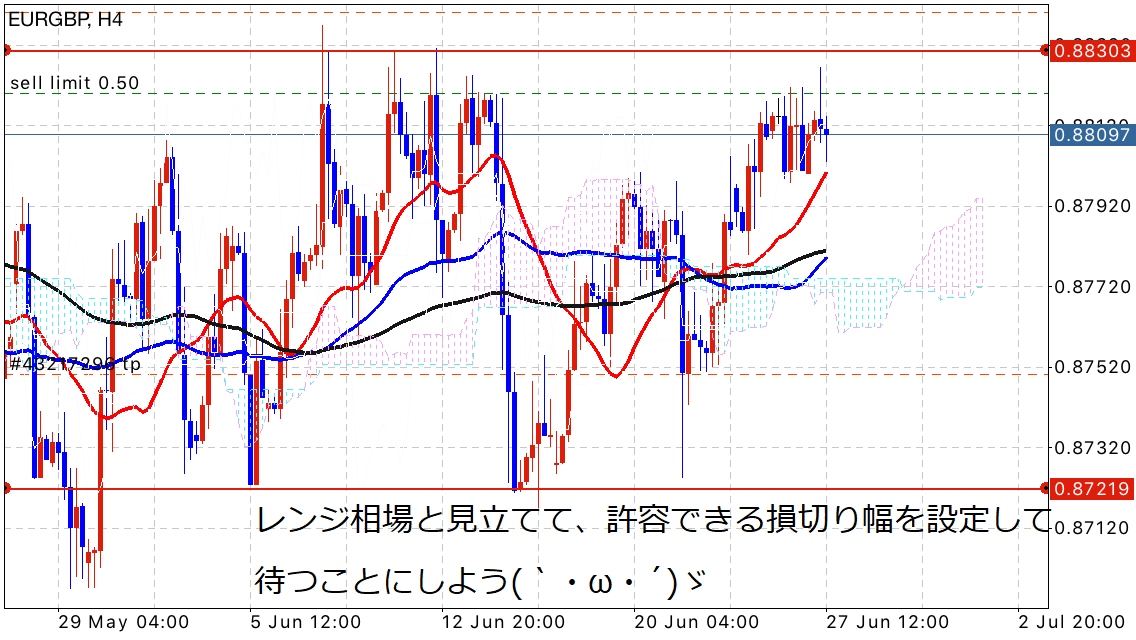 とは言っても長期足がレンジと言っているので、そのシナリオに沿ったトレードスタイルを仕掛けて待つことにしました!