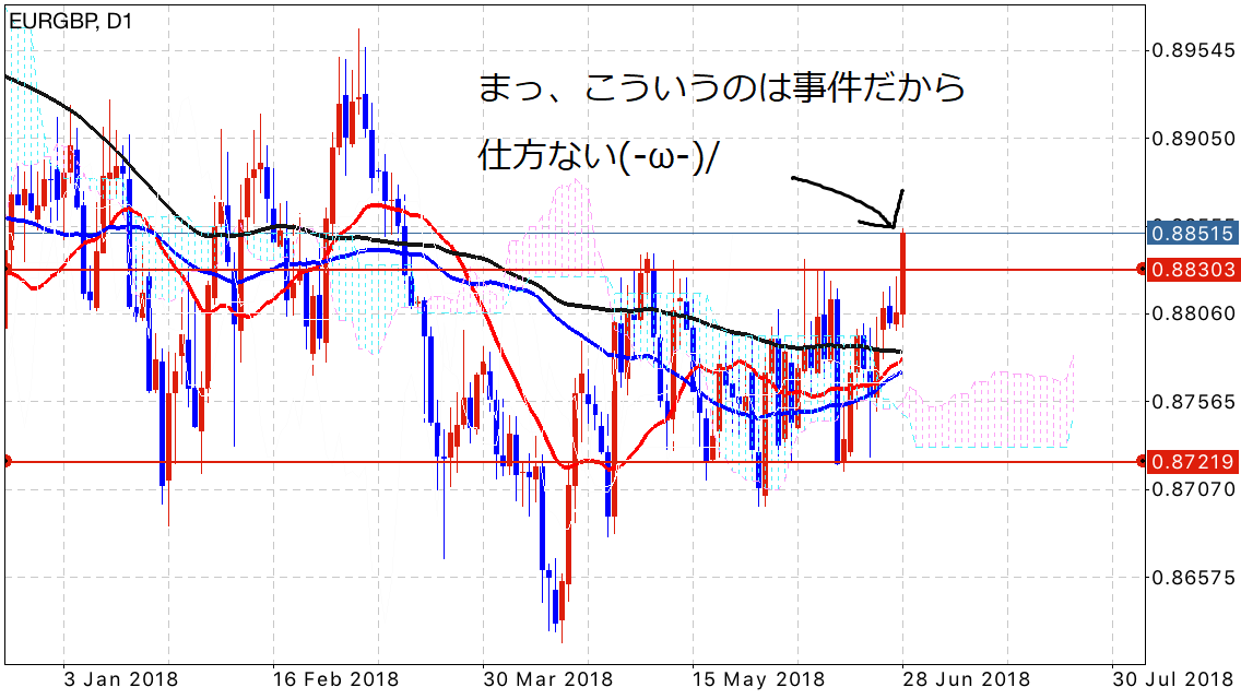 もう一度レンジの動きをしてくれれば十分な利益を狙えるのでこの上辺から売りを仕掛けたいと思います(`・ω・´)ゞ