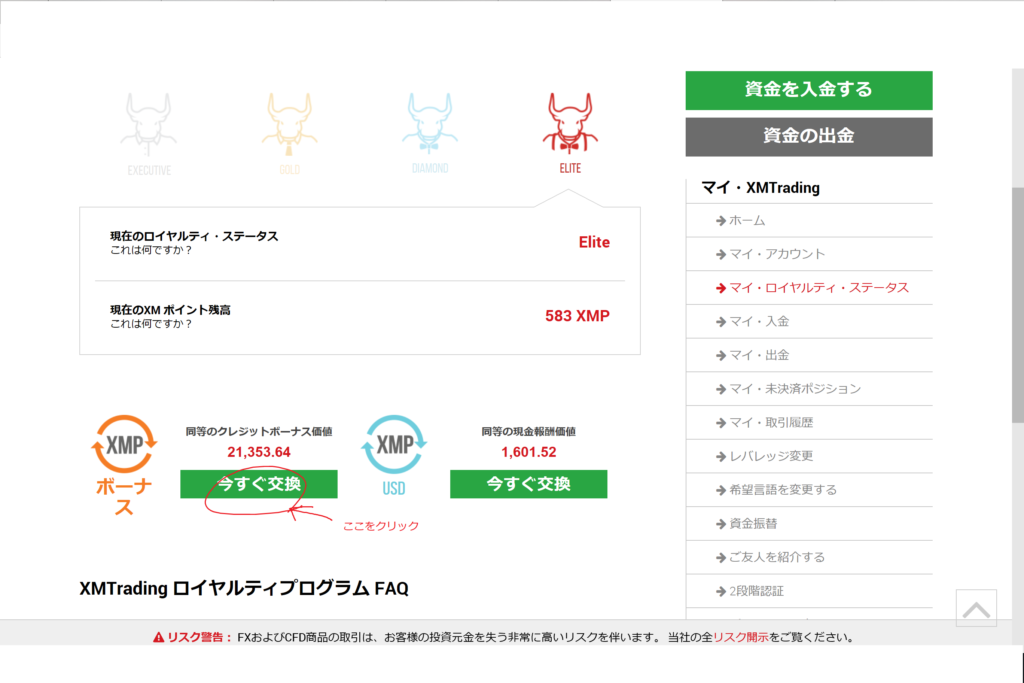 しかし、ひとつ注意して欲しいのが、特定の期間の間取引をされない場合、XMP の有効期限が切れ、ロイヤルティーステータスがExecutive レベルにリセットされます。