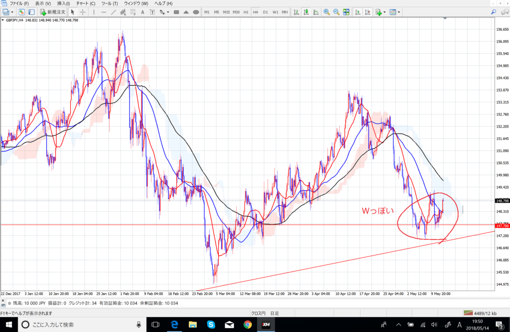 今回はちょうどトレンドラインと水平線にサポートされた