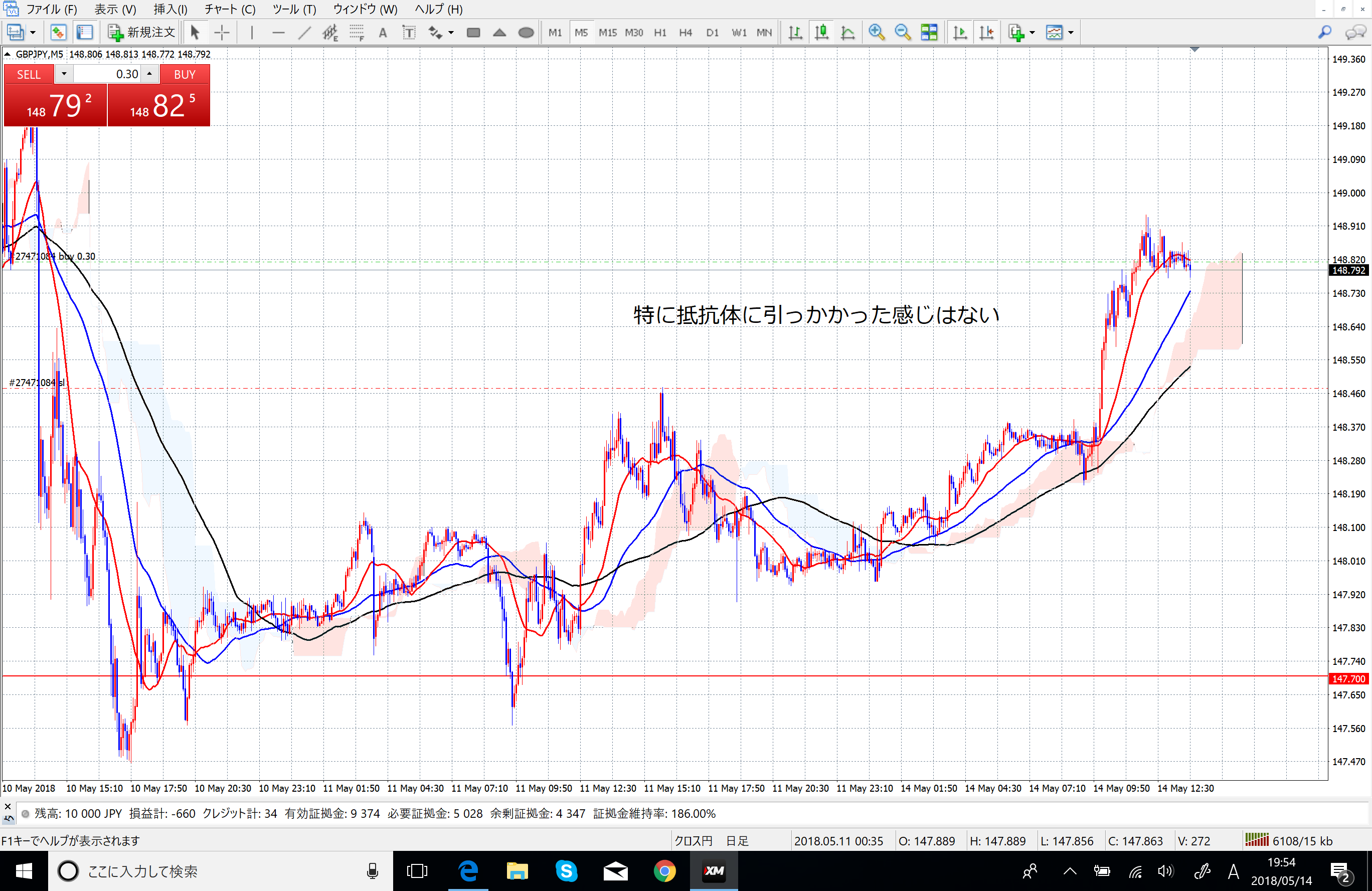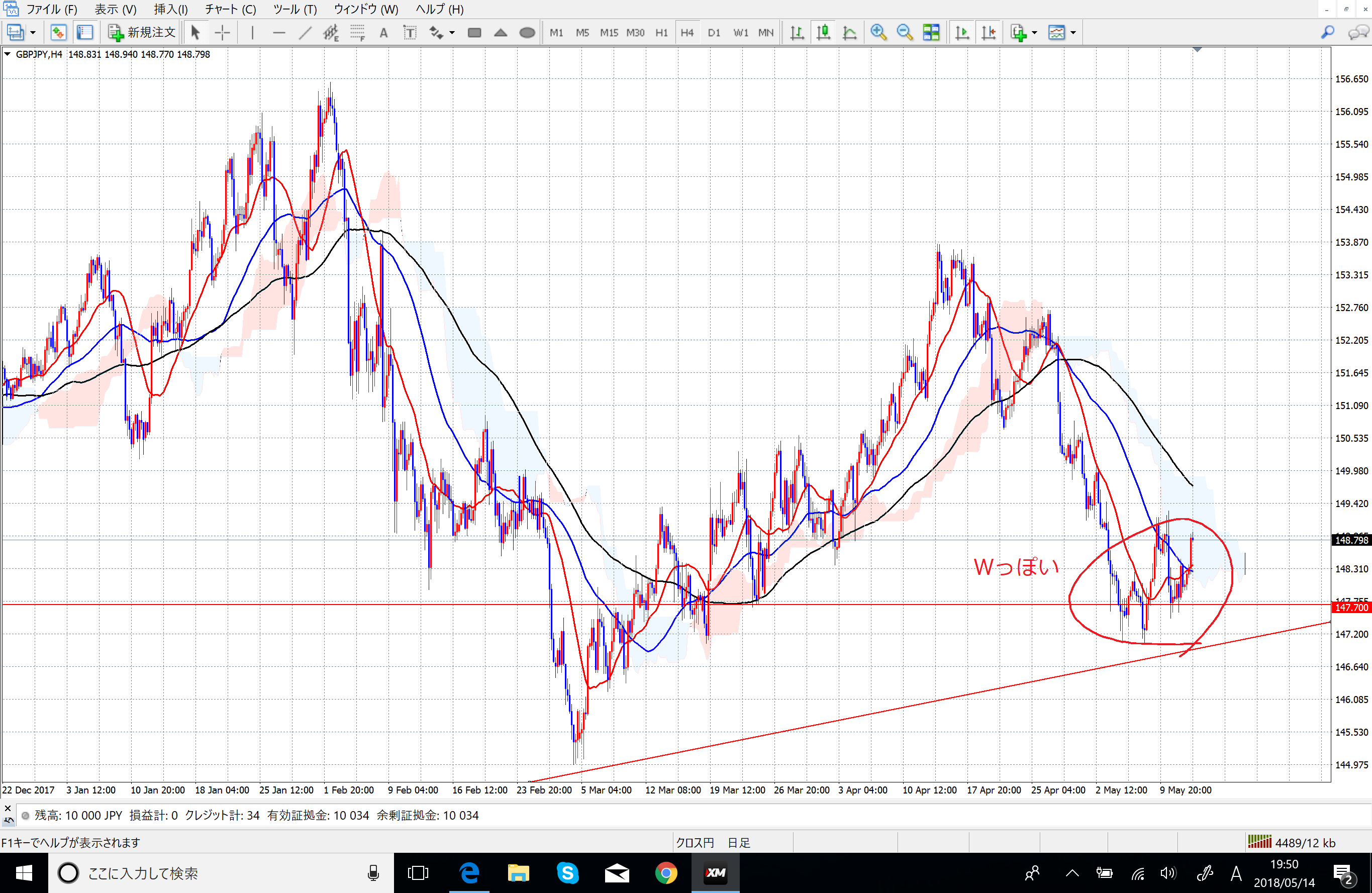 基本的に移動平均線と一目均衡表の雲を表示した