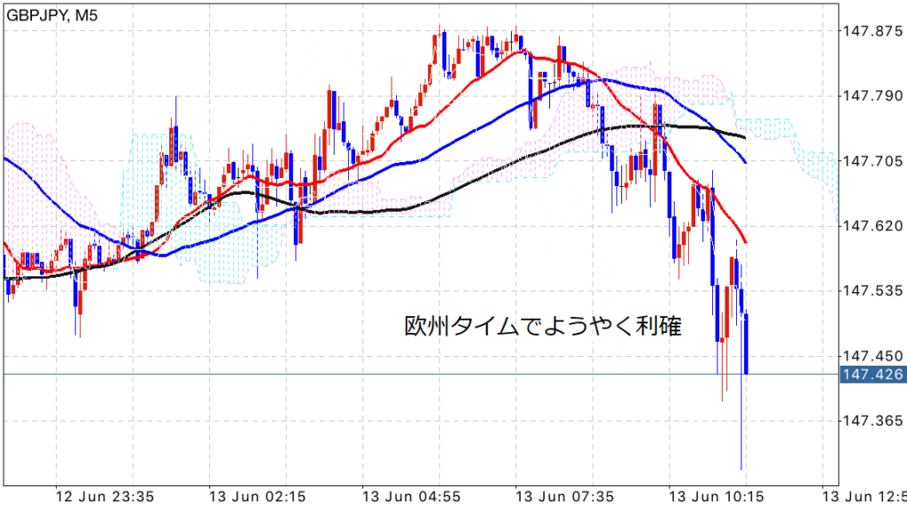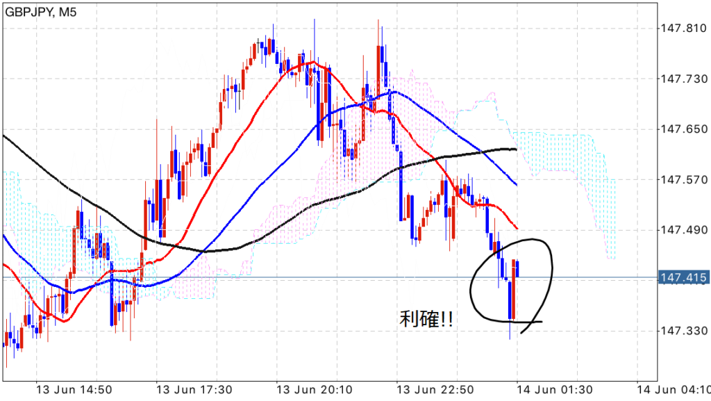 今回は遅れながら、先週の6/12と6/13に同様の展開をしているM.N.過ぎの相場で利益を上げたので紹介します(`・ω・´)ゞ