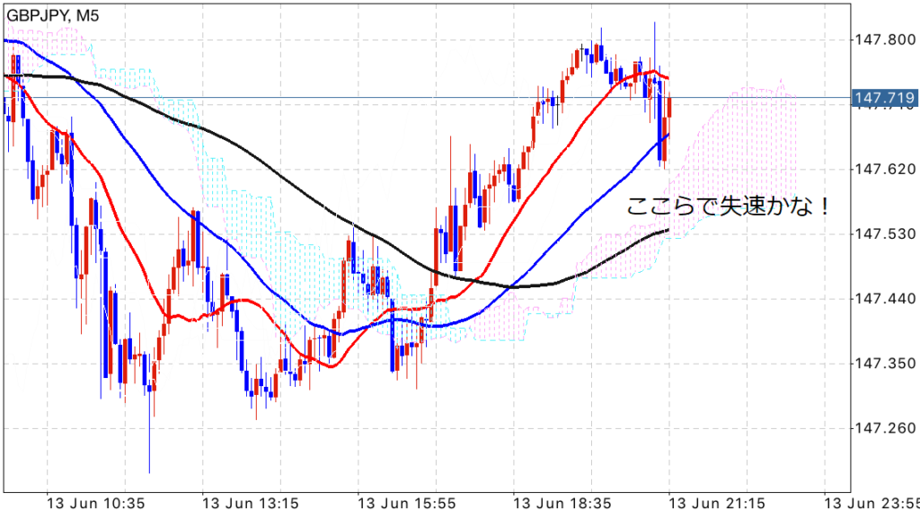 勢いのある上昇がグイっと抑えられている感じなのですかさずエントリー!
