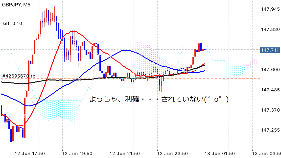 完全に利確ラインに刺さってるように見えるのに何故か利確がされていない(゜o゜)