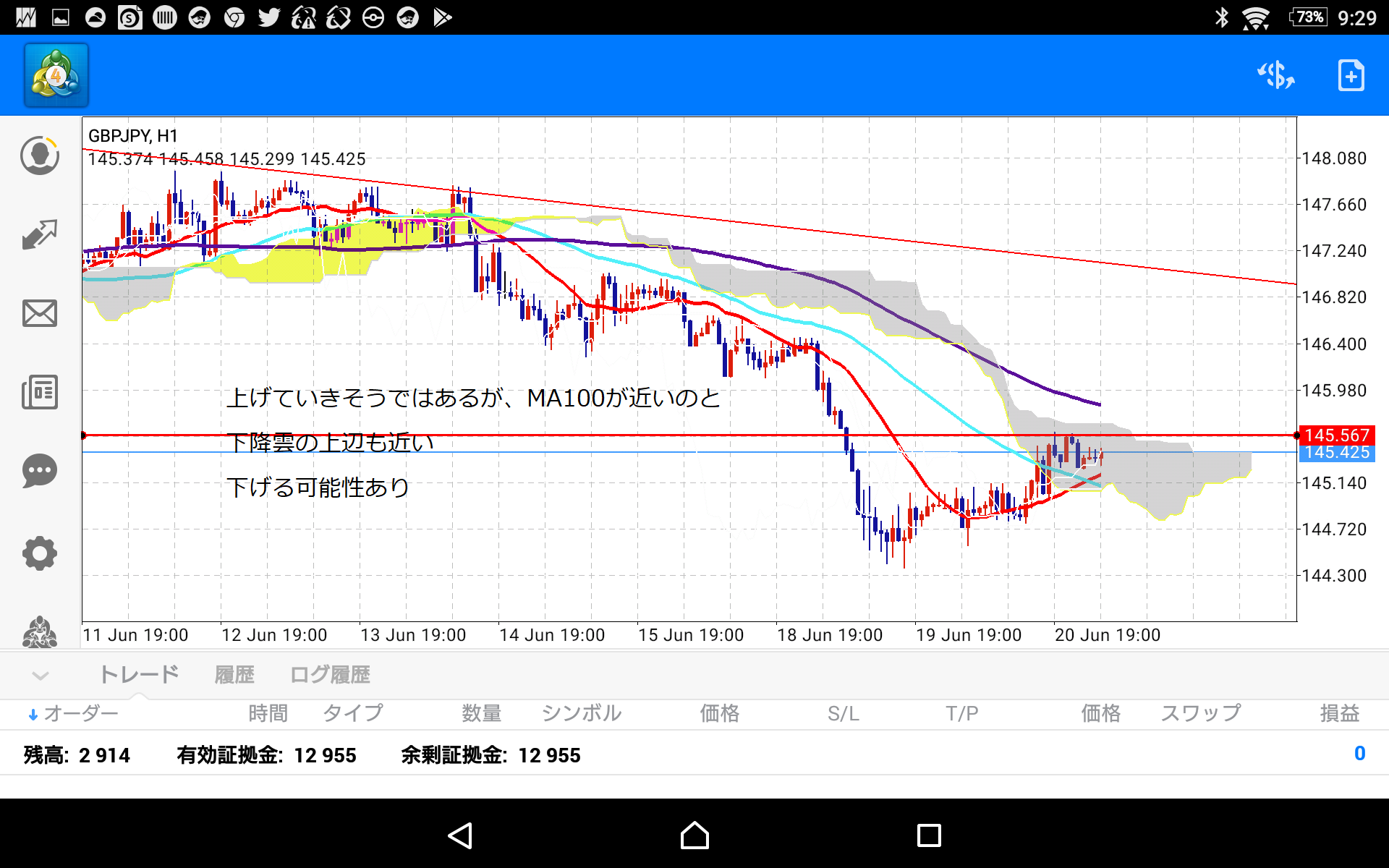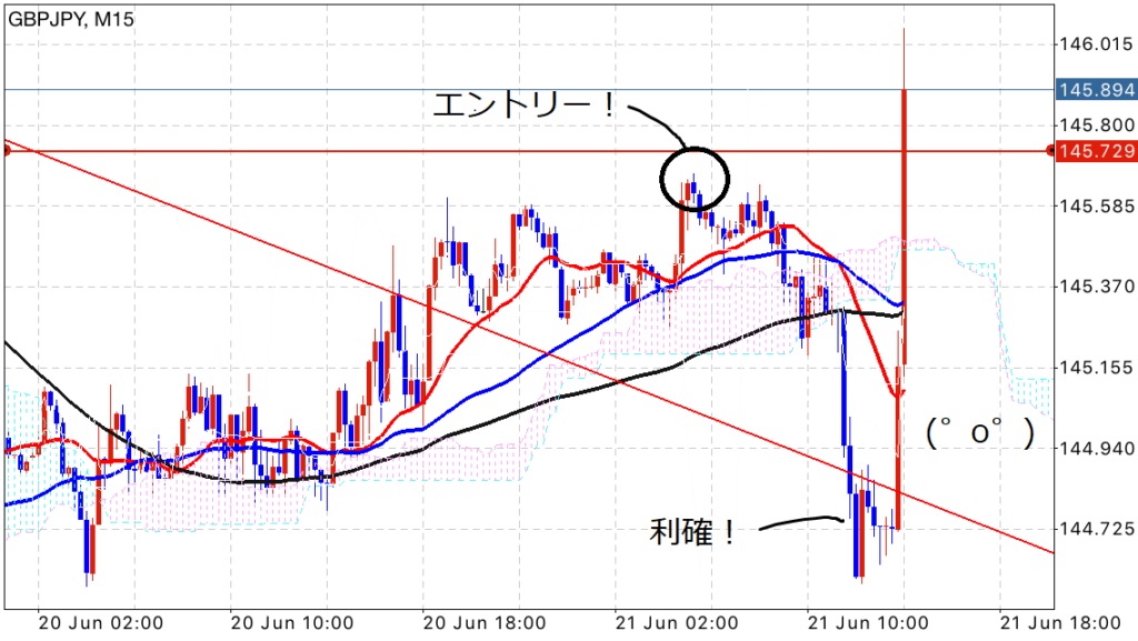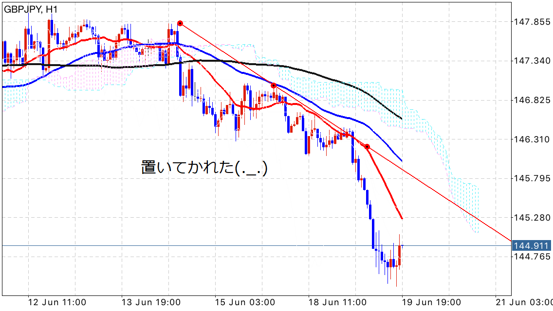 前回の投稿で戻り売りを狙っていきたいと宣言していましたが、戻ることなく逃げられてしまいました(。-∀-)