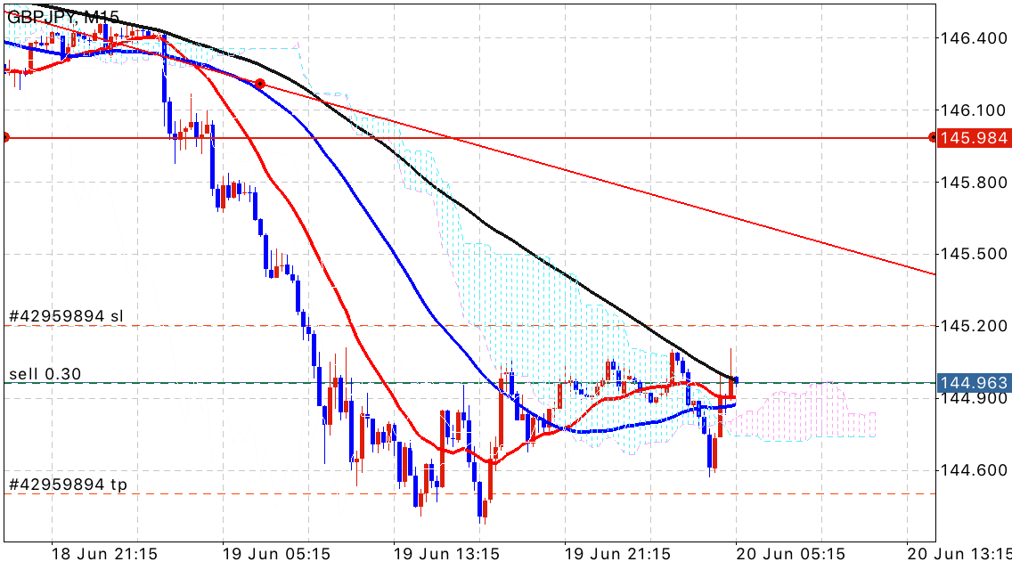 短期的な目線になりますが、15分足でレンジ気味の値動きをしている中でMA100と接触するポイントで戻り売りを仕掛けてみました!